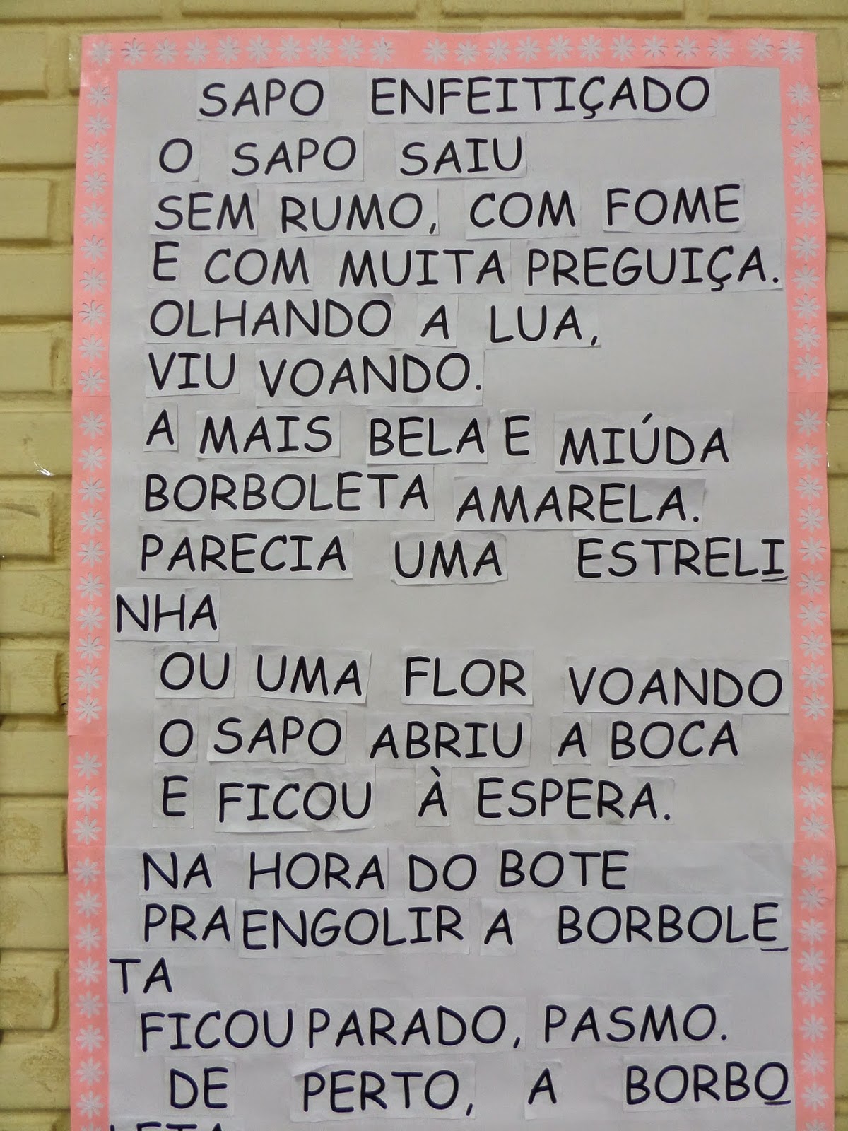 Eles procuravam, me mostravam se estava correto e colavam no cartaz. Em seguida, corriam para pegar a próxima parte da poesia. Eu falava em versos para eles.