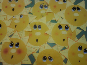 Trata-se de um círculo e nove triângulos, que devem ser todos encaixados corretamente. Se um triângulo não foi encaixado, deve-se refazer a organização na mesa. Depois de todas as partes encaixadinhas e que elas são coladas cuidadosamente. Depois é só deixar secar, para em seguida montar o rostinho e escrever as palavrinhas.